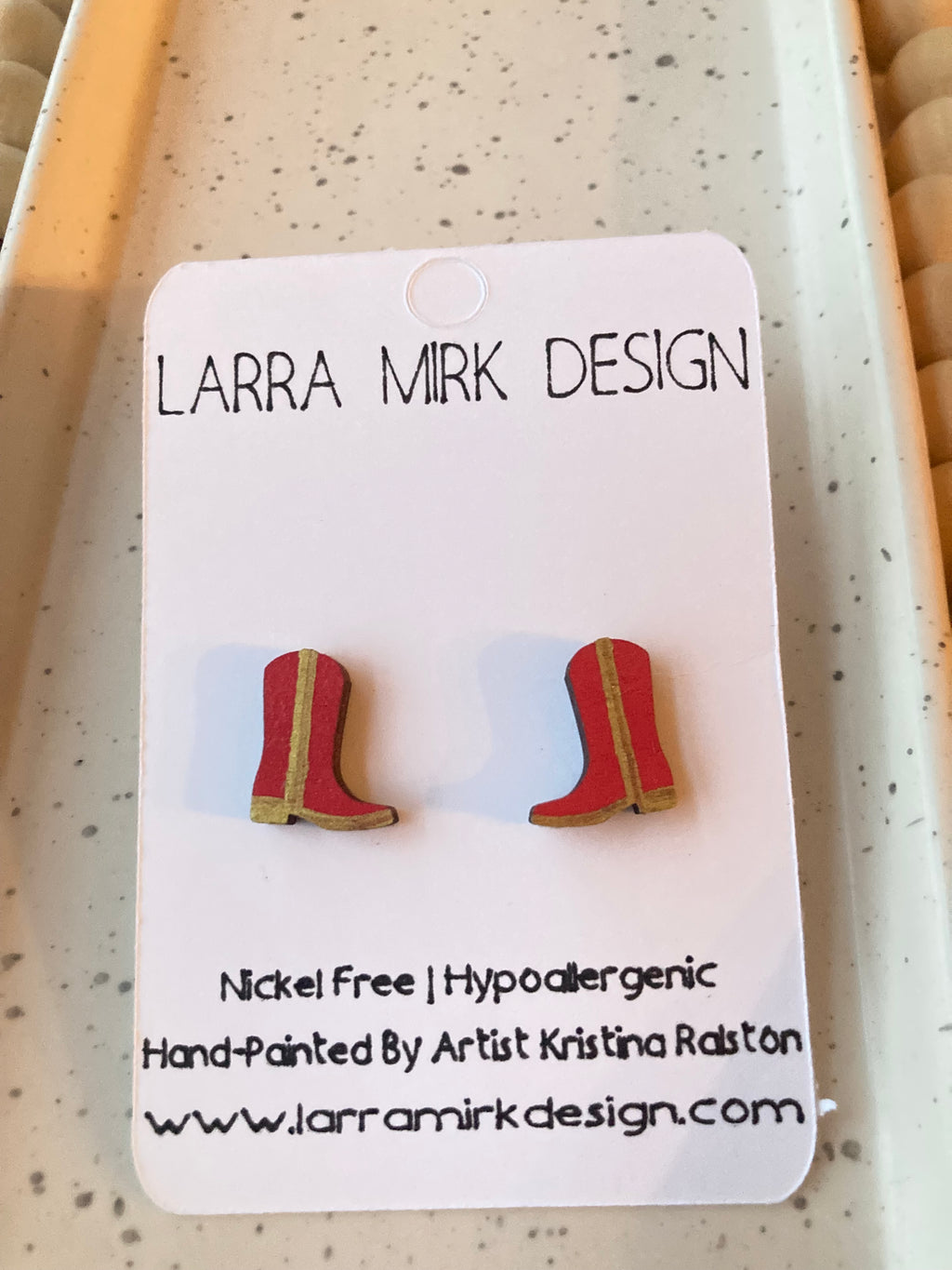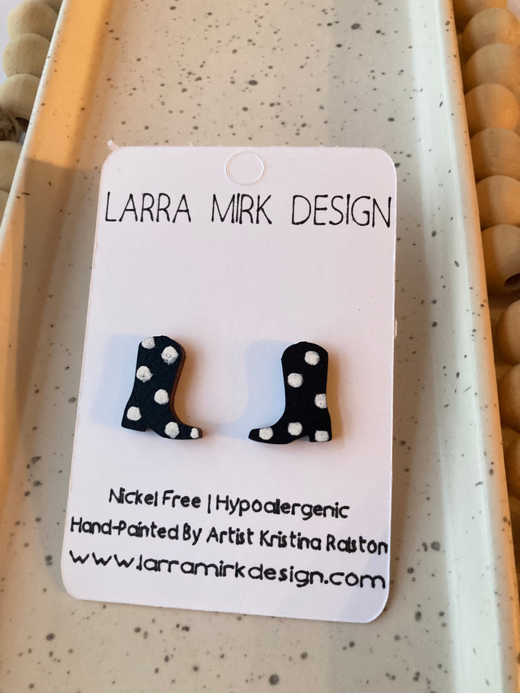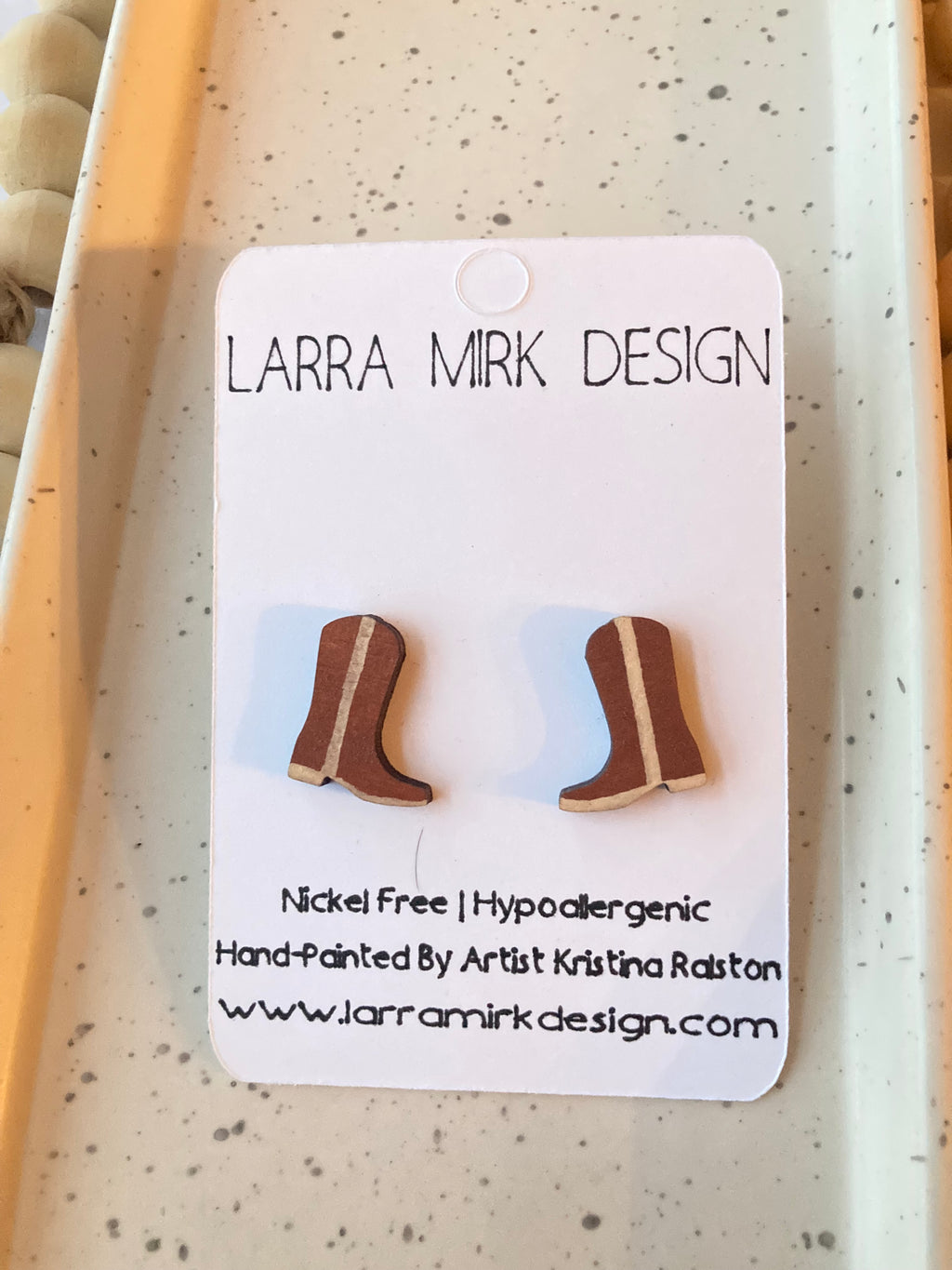 All of our earrings are nickel free and hypoallergenic. Larra Mirk Design's core materials for earrings are 100% genuine gemstones and wood.